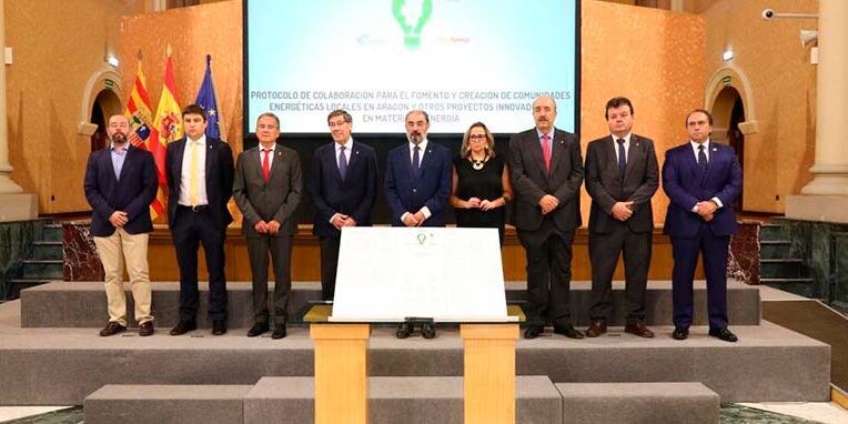 Aragón sigue construyendo su propio modelo energético y en este proceso hoy se ha dado un paso más con la firma de un protocolo de colaboración en el que participan los representantes territoriales de Aragón, diputaciones y municipios (FAMCP), el mundo empresarial y el Clúster de la Energía.