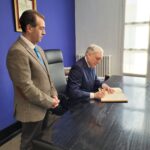 El alcalde de Belchite y presidente de la FAMCP, Carmelo Pérez, ha recibido hoy en su localidad al Vicepresidente primero y Consejero de Desarrollo Territorial, Despoblación y Justicia, Alejandro Nolasco, y al Consejero de Fomento, Vivienda, Movilidad y Logística del Gobierno de Aragón, Octavio López.