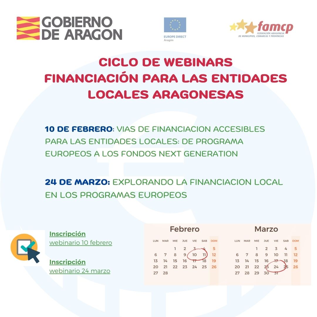 - 10 de febrero: Vías de financiación accesibles para las entidades locales: de programa europeos a los fondos Next Generation. Inscripción para participar