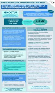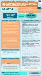 • Línea de Ayudas “Fortalecimiento de la actividad comercial en zonas turísticas”. 100 millones de euros en 3 años (2021-22-23). El Plazo para la presentación de Proyectos finaliza el 4 de octubre.