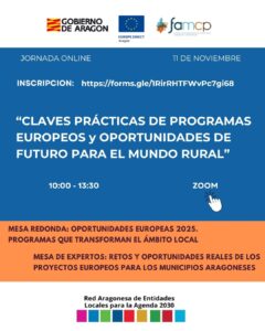 Me pongo en contacto contigo para informarte de la jornada online “Claves prácticas de los programas europeos y oportunidades de futuro para el mundo rural”, organizado por Gobierno de Aragón, Europe Direct, Red Aragonesa de Entidades Locales para la Agenda 2030 y FAMCP.