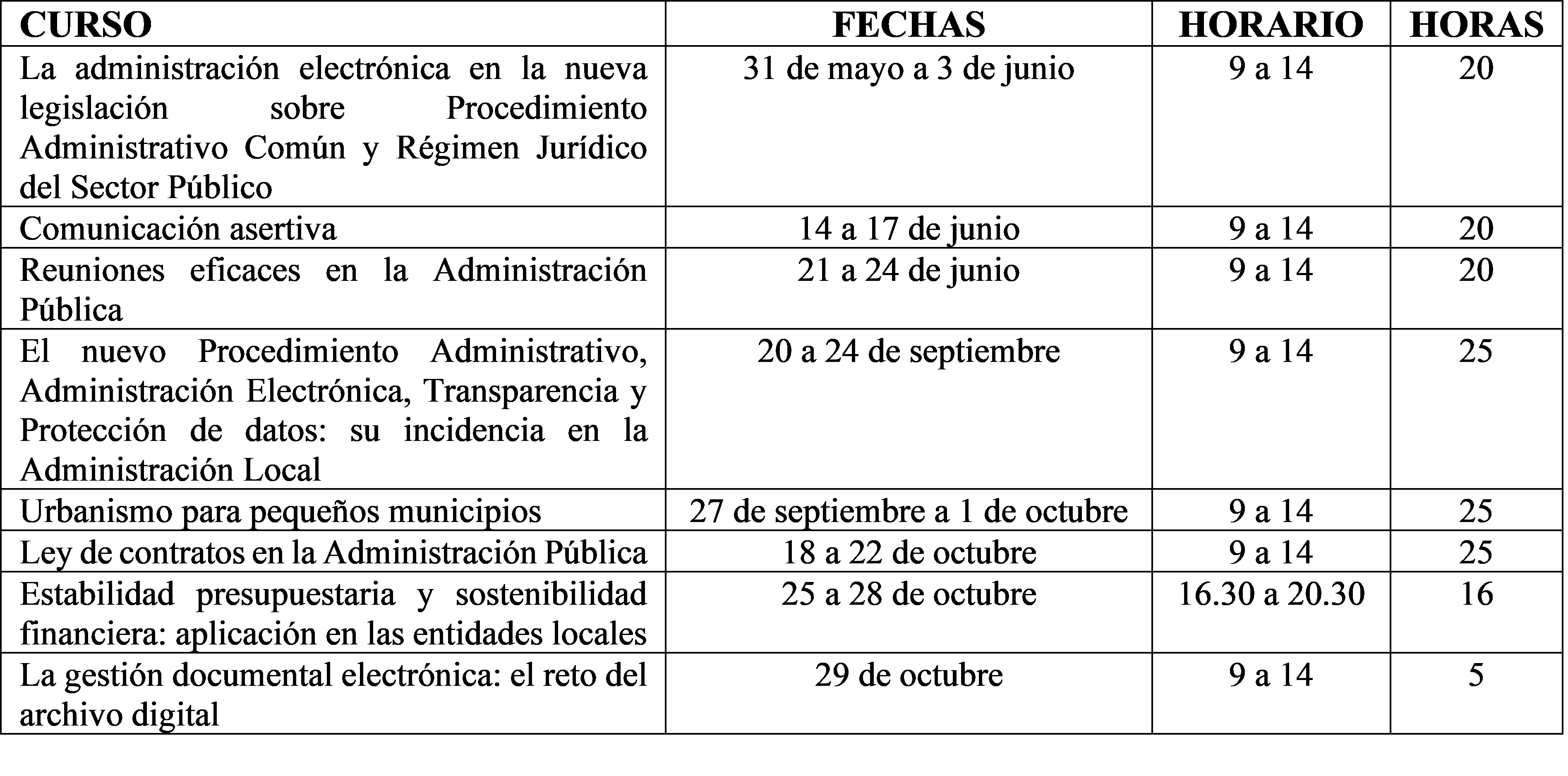 Dichos cursos van dirigidos al personal de la Administración Local de la provincia de Zaragoza y son los siguientes: