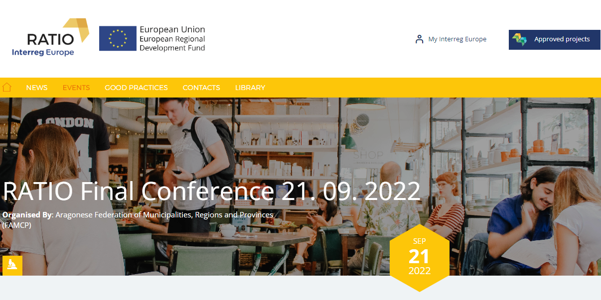 El Proyecto Ratio, que se enmarca dentro del programa EU Interreg Europe, celebrará su jornada final este miércoles 21 de septiembre en el Centro Joaquín Roncal de Zaragoza. De 9.00 a 14.00 horas se presentarán las buenas prácticas en Innovación y Desarrollo en empresas de ámbito rural de este proyecto, que ha contado con la Federación Aragonesa de Municipios Comarcas y Provincias (FAMCP) como coordinadora. En esta jornada se reunirán socios de siete regiones europeas diferentes: los expertos de la región alemana de Leipzig; los de la región de Usti, en la República Checa; los representantes de la Fundación Democracia Local de Malopolska, en Polonia; los de la región de Vidzeme, en Letonia; los del Ayuntamiento de Vila Pouca, en Portugal; y los italianos de la Asociación de Municipios de Lazio.