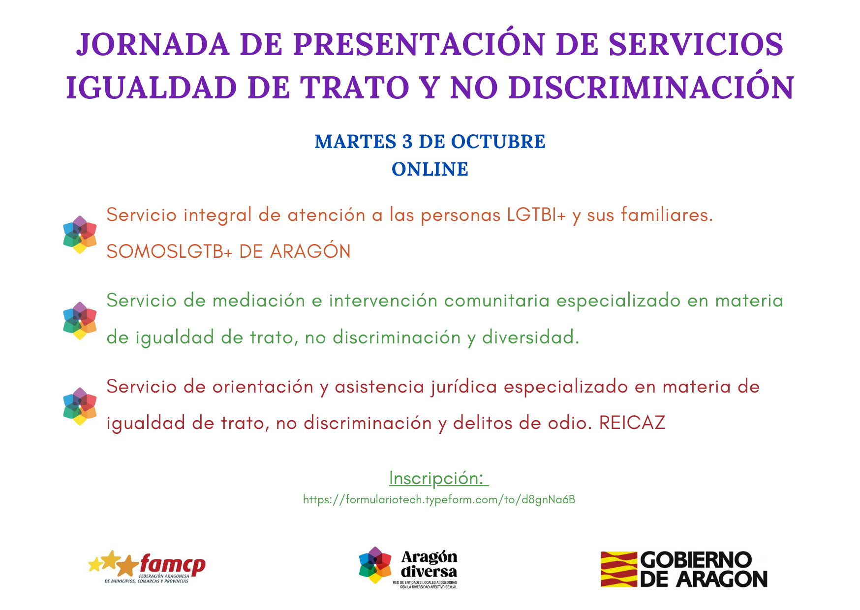 El próximo 3 de octubre martes tendremos una breve charla de presentación de los servicios a los que podéis acudir en busca de asesoramiento y ayuda en el desarrollo de las acciones para la igualdad y no discriminación.