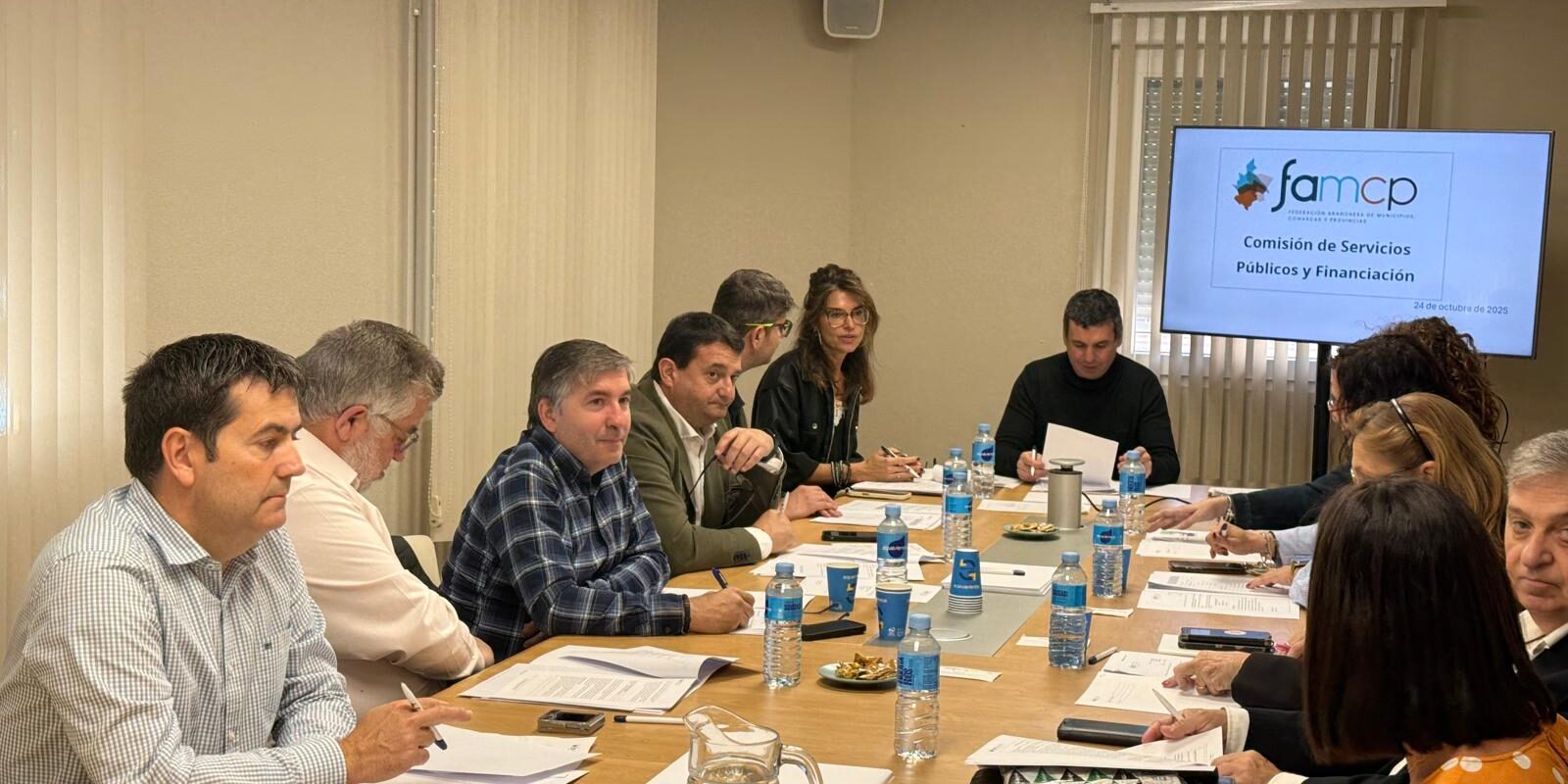 Zaragoza, viernes 24 de octubre de 2025. La Comisión de Servicios Públicos y Financiación de la FAMCP ha celebrado una nueva sesión de trabajo en la sede de la Federación. Durante la sesión de trabajo y de manera unánime, se ha instado que el Gobierno de Aragón continue su labor para exigir la ejecución de la sentencia que obliga al MNAC a devolver las pinturas murales de Sijena, asegurando su retorno inmediato y efectivo a Aragón.