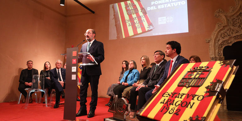 El presidente de Aragón, Javier Lambán, ha rememorado los antecedentes de una comunidad política milenaria que «hace diez siglos sus gentes ya se llamaban aragoneses» y que tras varios momentos históricos en los que se intentó recuperar el autogobierno, el último frustrado por la guerra civil española, se logró finalmente en 1982. No obstante, más allá de la alegría del primer texto, Lambán ha reconocido que ha sido más tarde cuando se produjo la reforma más integral del texto en 2007, se alcanzó el el máximo nivel competencial.