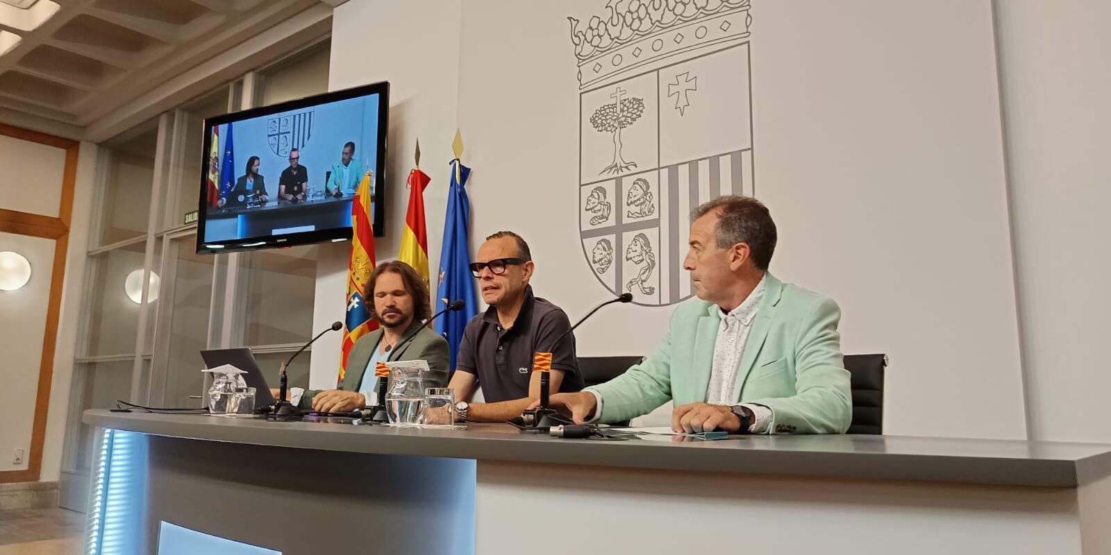 Zaragoza, jueves 18 de septiembre de 2025. El director general de Cultura del Gobierno de Aragón, Pedro Olloqui, el presidente de la Federación Aragonesa de Municipios, Comarcas y Provincias (FAMCP), Carmelo Pérez, y el presidente de la Agencia Nacional de Cultura Sostenible (ANCS), Carlos Castel, han presentado este jueves la plataforma digital RED-ES (Plataforma Red de Artes Escénicas y Musicales), una herramienta que permite el acceso y proyección, a nivel nacional, de la industria cultural aragonesa.