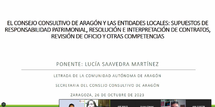 El Consejo Consultivo de Aragón y las entidades locales es la temática del nuevo curso de formación que se celebra este jueves de forma telemática, organizado por la Federación Aragonesa de Municipios, Comarcas y Provincias (FAMCP) para cargos elegidos en las pasadas elecciones municipales del 27 de mayo. Lucía Saavedra Martínez, Secretaria-Letrada del Consejo Consultivo de Aragón, ha sido la encargada de impartir este curso que acerca a las entidades locales el funcionamiento del supremo órgano consultivo del Gobierno y de la Administración de la Comunidad Autónoma que se encuentra regulado en el Estatuto de Autonomía de Aragón y en la Ley 1/2009, de 30 de marzo. Tiene su antecedente en La Comisión Jurídica Asesora del Gobierno de Aragón, creada en 1995, que ejerció sus funciones hasta que fue sustituida por el Consejo Consultivo de Aragón.