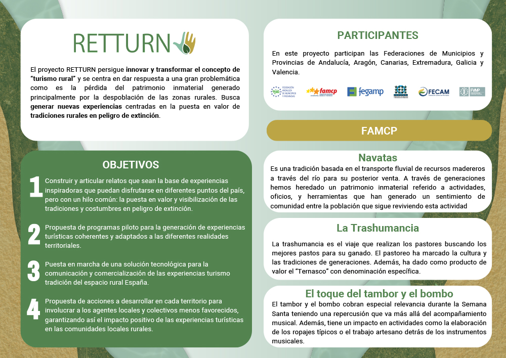 https://quint.cc/famcp/retturn-red-de-experiencias-turisticas-basadas-en-la-tradicion-rural/Por FAMCP19 julio, 2023Navegación entre proyectosAnteriorProyecto anteriorPROYECTO ZERO WASTESiguienteProyecto siguientePROYECTO STREETS FOR CITIZENS