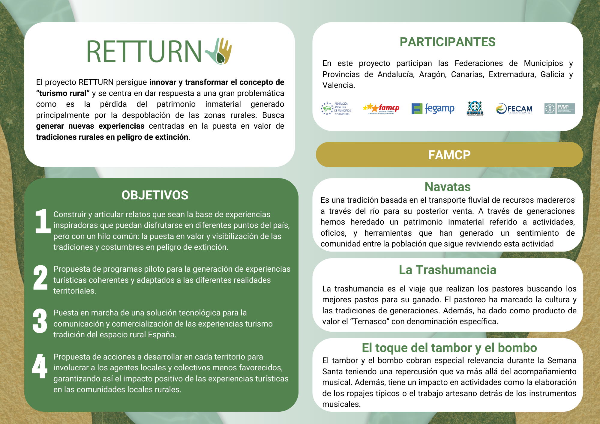 Creación de Experiencias Turísticas en torno a las tradiciones en el espacio rural para poner en valor y salvaguardar el patrimonio inmaterial, fomentando la cohesión territorial de nuestras regiones, y por ende de nuestro país.