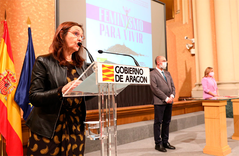 El Gobierno de Aragón, comarcas y ayuntamientos han escenificado este miércoles la unidad en la lucha contra la violencia machista. Lo han hecho con la firma de sendos protocolos entre el Ejecutivo autonómico y las corporaciones que cuentan con Policía local, por un lado, y con las comarcas que han firmado acuerdos de colaboración con el Instituto Aragonés de la Mujer, por el otro.